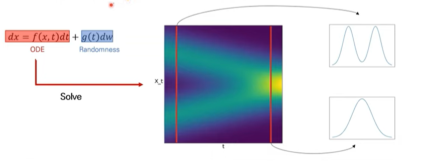 위와같은, SDE의 해를 풀게되면 위와같은 확률분포들이 나열된 형태(랜덤 프로세스)를 찾을 수 있습니다.