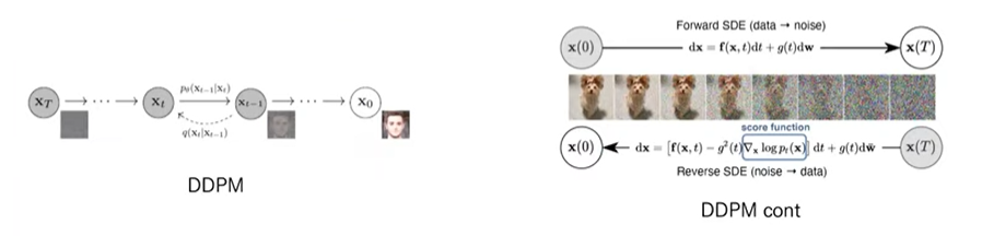 해당 논문에서 제안하는 것은 즉, NCSN/DDPM의 continuous한 버전이라고 할 수 있습니다. DDPM에서 Forward SDEs는 노이즈를 추가하는 과정, Reverse SDE는 노이즈를 제거하는 과정입니다. 여기서 Reverse SDE에 score function이 존재하게 됩니다.