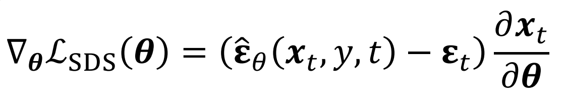 그럼 위와같이 SDS loss를 구성할 수 있습니다. DreamFusion의 Appendix에는 해당 수식이 왜 동작하는지에 대한 증명도 있습니다.
