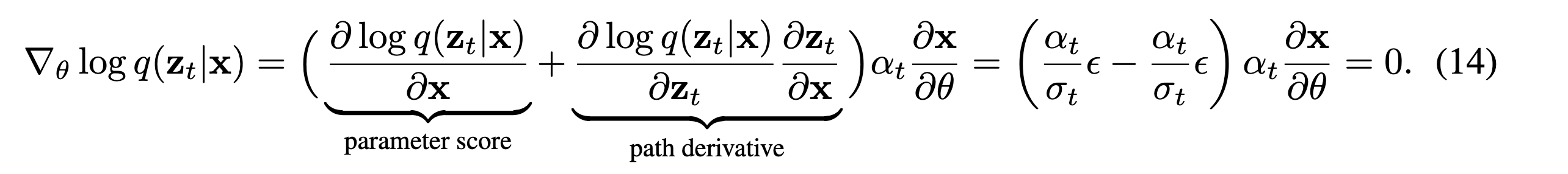 위와같이 우리는 (A)을 parameter score + path derivate로 분해하여 표현할 수 있는데, Stikcking-the-Landing이라는 논문에서 path derivate만 남기고 parameter score를 제외시키면 path derivate가 다른 Loss term과 correlate되어 variance가 줄어들게 된었다고 해서, 해당 Term을 사용하겠다 합니다.